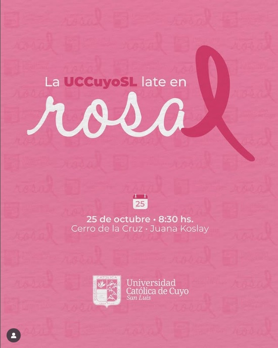 En el marco del Mes de la concientización sobre el cáncer de mama, la Universidad Católica de Cuyo, sede San Luis, te invita a participar de una jornada especial 💞